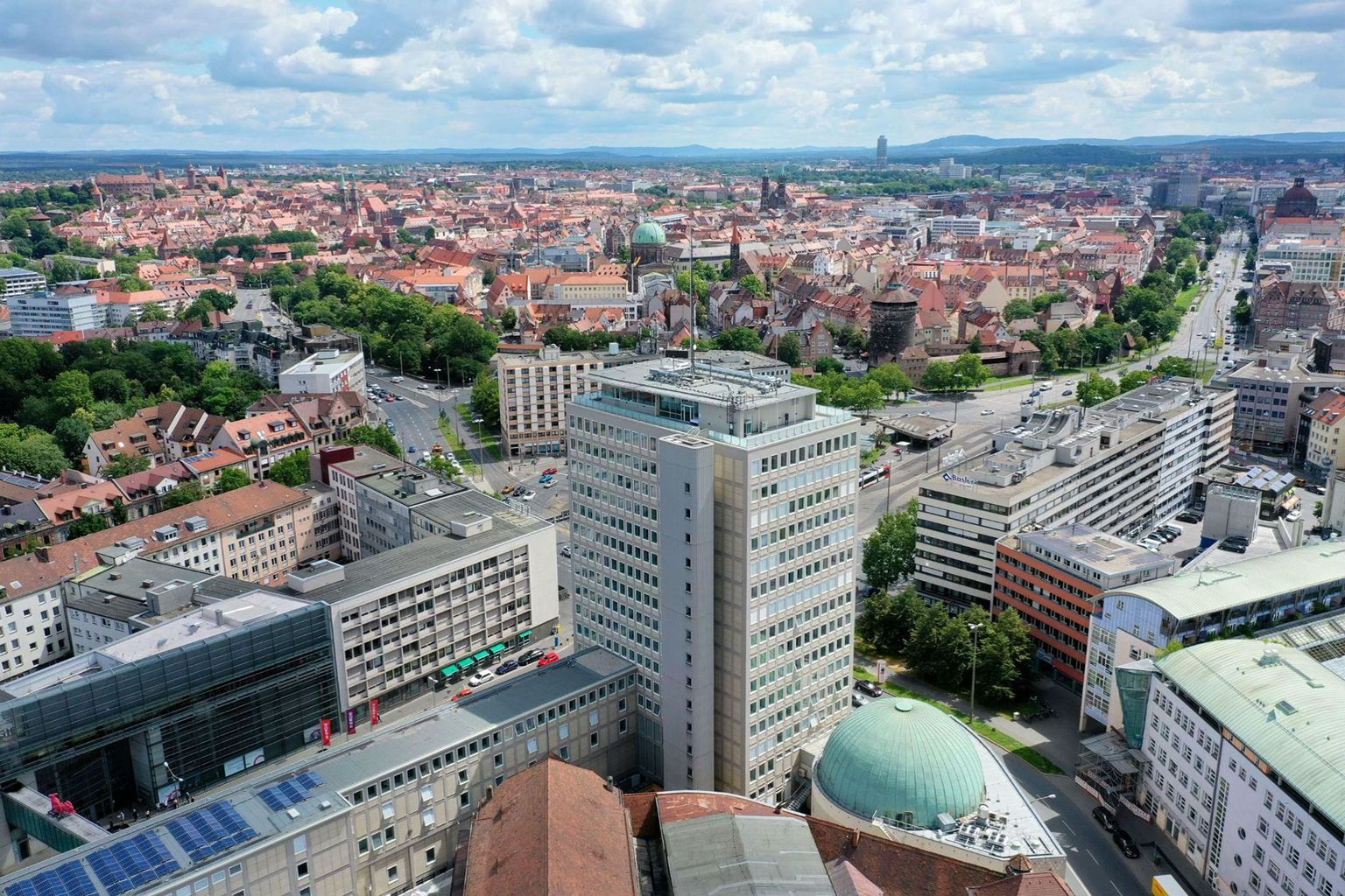 Innovation hat in Nürnberg Tradition. Das gilt vor allem für den Bereich des öffentlichen Personennahverkehrs. Schon 1835 startete vom Nürnberger Plärrer aus die erste deutsche Eisenbahn in Richtung Fürth. Und genau dort, wo es damals losging, ist heute unsere Unternehmenszentrale. Untergebracht sind wir in einem Hochhaus, das nach dem Zweiten Weltkrieg als erstes in Bayern gebaut wurde und symbolisch für den Wiederaufbau stand. Wir haben von dort aus einen wunderbaren Blick auf Nürnberg und machen uns so jeden Tag bewusst, wofür und für wen wir arbeiten: für die Nürnberger:innen und unsere l(i)ebenswerte Stadt.